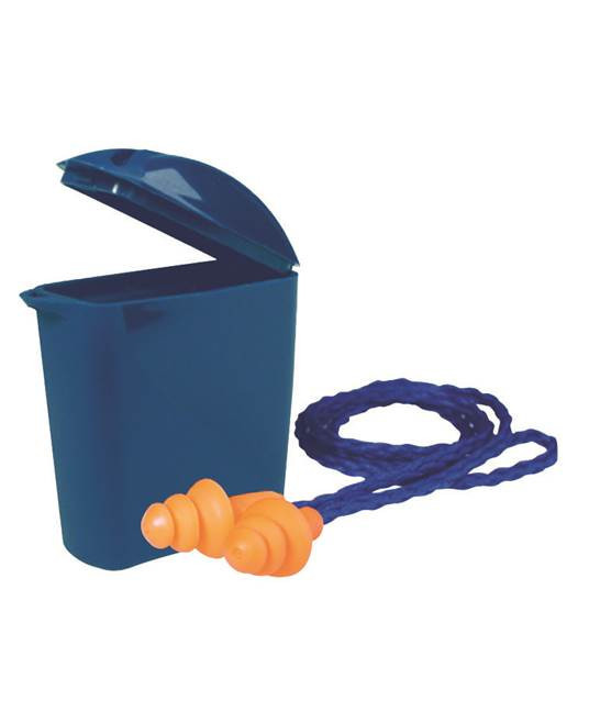 újrafelhasználható füldugók, hipoallergén monoprén, tároló tok övcsipesszel, csatlakozószállal, anyag: monoprén, poliészter, acetát, szabvány: EN 352-1, SNR csillapítás: 25 dB, szín: kék-narancs